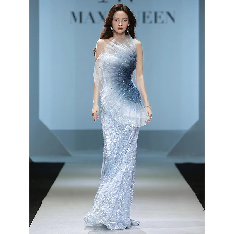 One-shoulder Sequin Slit Party Sexy Elegant Banquet Party Evening Dress