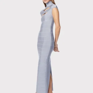 Grey Bandage Dress Women’s Sleeveless Stand Collar Hollow Bodycon Celebrity Party Club Maxi Dress Vestidos
