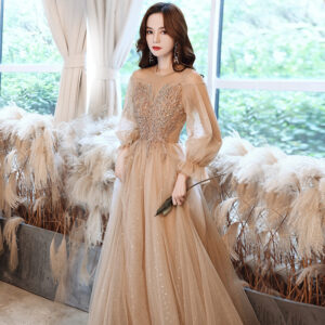 Elegant Long Sleeve Round Neck Shawl Banquet Sequined A- Line Evening Dress