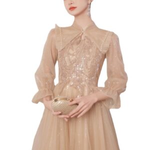 Women’s Champagne Light Luxury Evening Dress With Beading