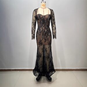 Pure and Sexy French High-end Mesh Strapless Dress Women’s Waist-cinching Slimming Banquet Formal Long Dress