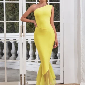 One Shoulder Long Evening Party Dress