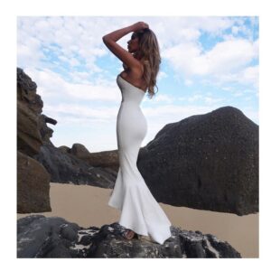 new sexy tube top halter waist slimming one step fishtail white dress evening dress show car model