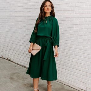 Elegant Midi Dress New Round Neck Long Sleeve Evening Party Dresses