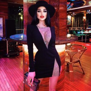 Sexy Net Diamond Ladies Party Long-sleeved Bandage Slim Dress