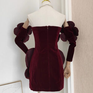 Niche Model Style Socialite Heavy-duty Velvet Three-dimensional Flower Tube Top Dress