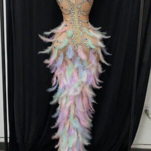 New Model Colorful Feather Rhinestone Elastic Wrap Hip Long Dress