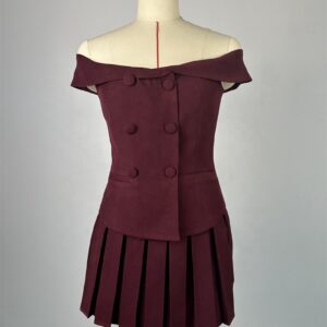 Off-shoulder Double-breasted Top Pleated Skirt Suit Set