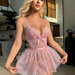 Mesh Lace Butterfly Seduction Pajamas Loungewear Suit Women
