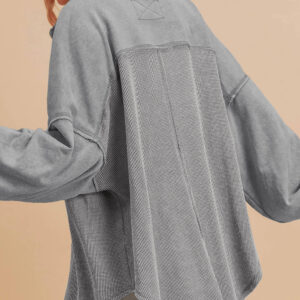 Medium Grey Waffle Knit Patchwork Exposed Seam Loose Shacket