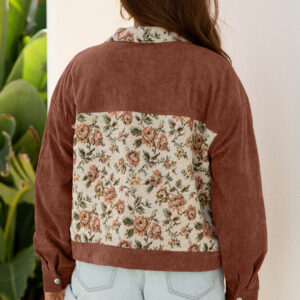 Clay Ribbed Retro Floral Patchwork Shirt Style Jacket