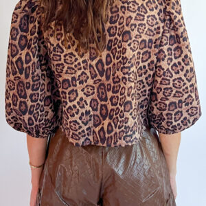 Brown Leopard Bow Tie Puff Sleeve Blouse