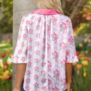 Purple Floral Collared Ruffled Half Sleeve Shirt