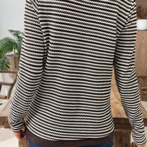 Brown Stripe Eyelet Hollow-out Contrast Collared Pullover Chic Sweater