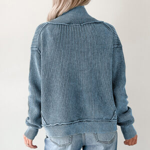 Dirty blue Solid Color Front Seam Drop Shoulder Loose Sweater