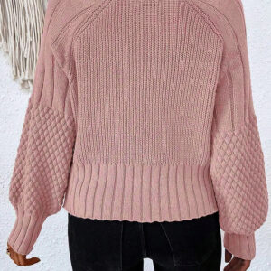 Light Pink Mixed Texture Knit Button V Neck Sweater Cardigan