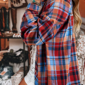 Jungle Green Ribbed Fleece Plaid Print Patchwork Button Up Jacket