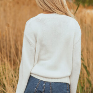 White Embroidered Bow Boots Graphic Drop Shoulder Sweater