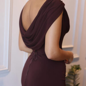 Brown Swoosh Collar Sleeveless Maxi Dress