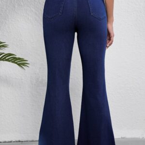 - Flare leg jeans feature golden button details for a chic, elevated denim look.