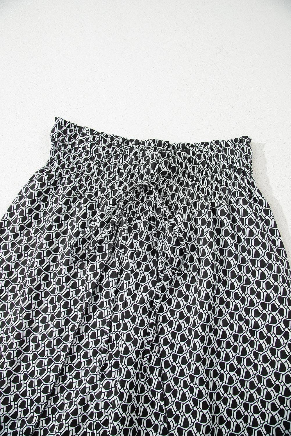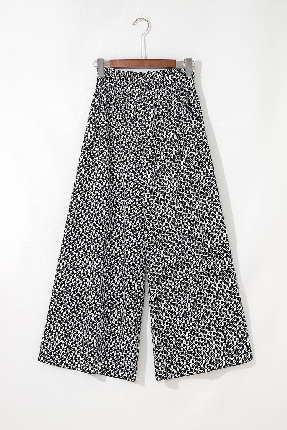 Black Bohemian Print Slit Wide Leg Smocked High Waist Pants