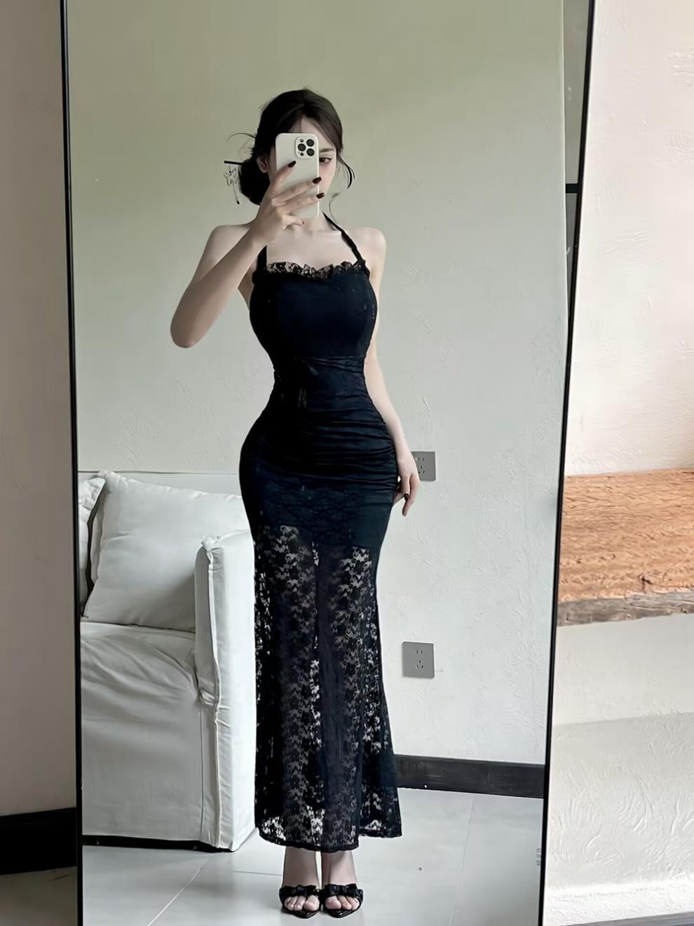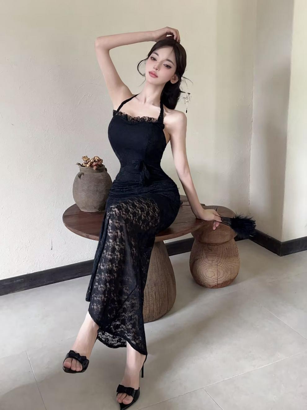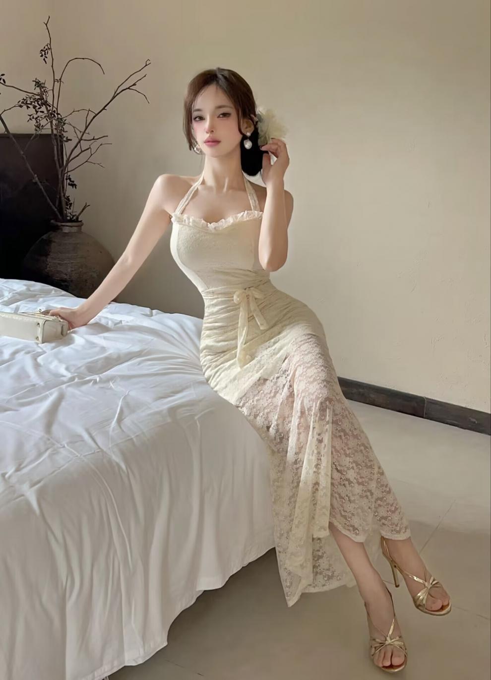 Pure Desire Style Lace Halter Dress Female Summer Light Luxury