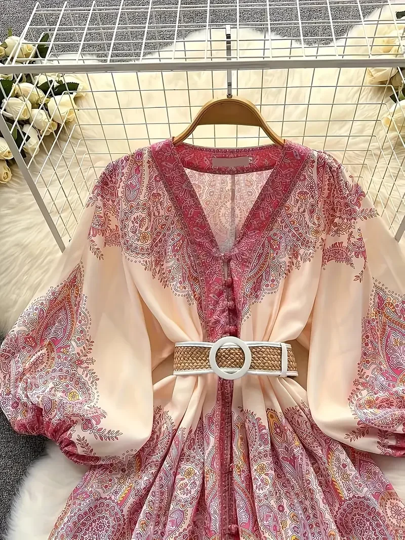 Buy Boho Women’s Dress – Vintage V-Neck Ruffled Floral Print Dress with Belt, Lantern Sleeves Button Down Casual Short Summer Dress at FashioZen. Enjoy ✓Free Shipping Worldwide! ✓Limited Time Sale ✓Easy Return.
