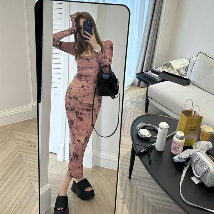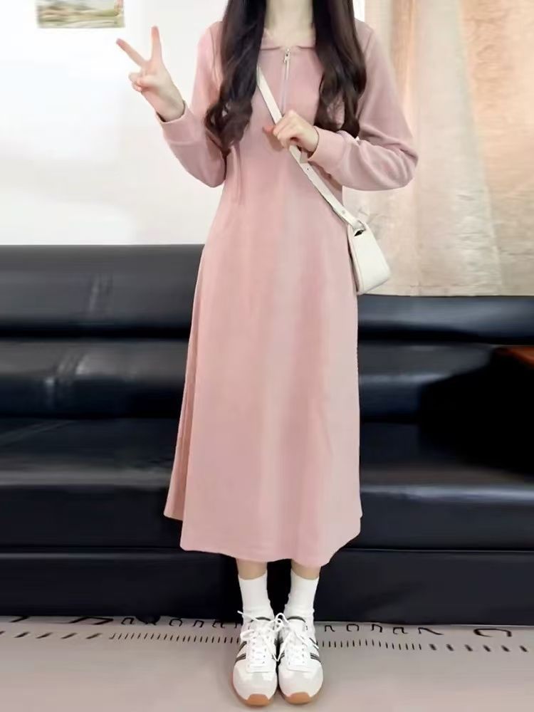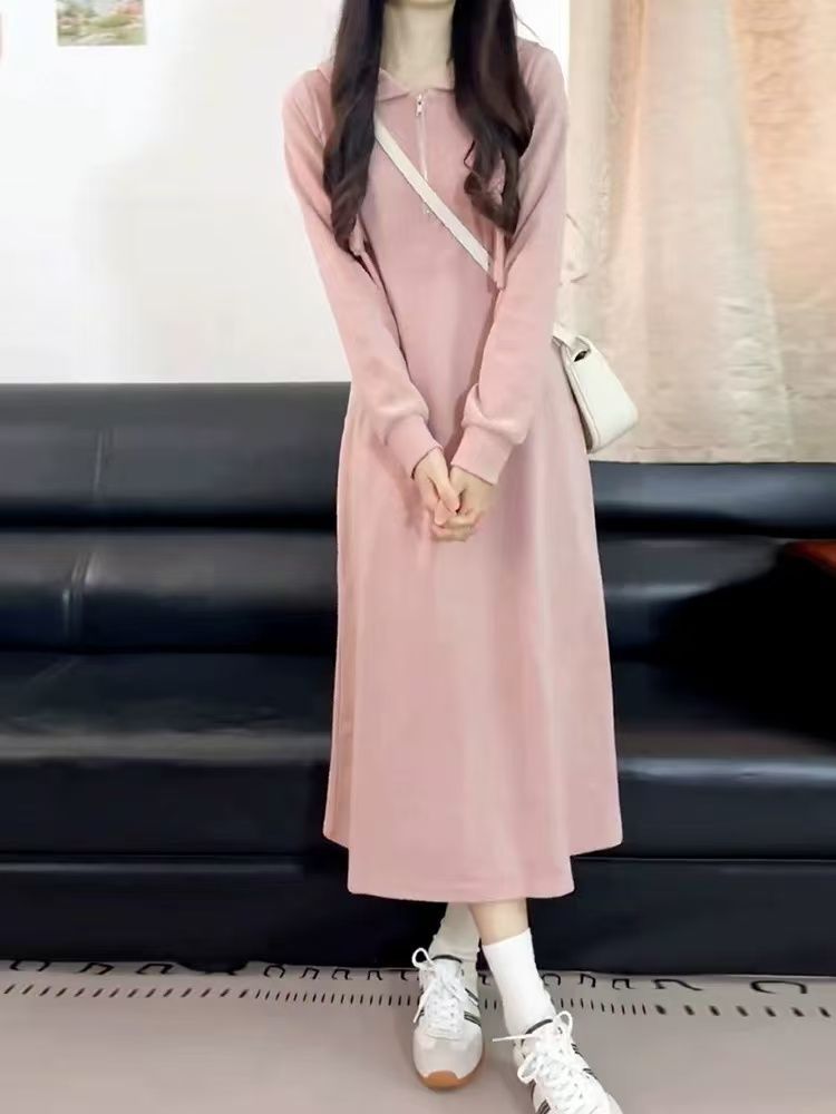 Pink Hooded Long Sleeve Dress for Women Elegant and Moderate Length, Fashionable Midi Dress