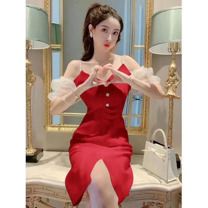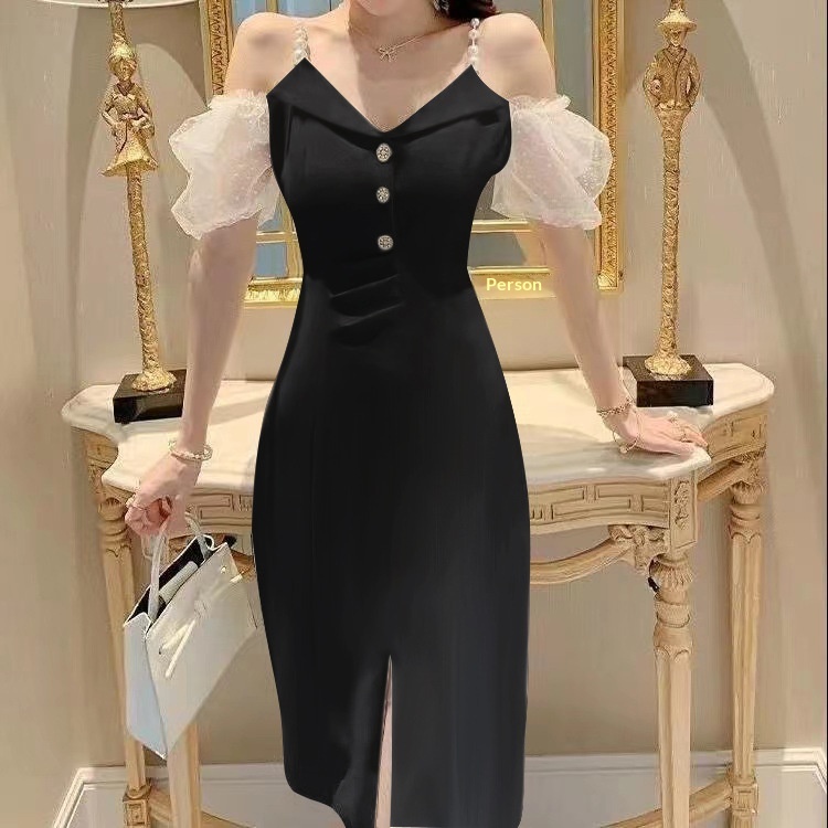 Be the first to review “Light Luxury Off-shoulder Design V-neck Camisole Dress”