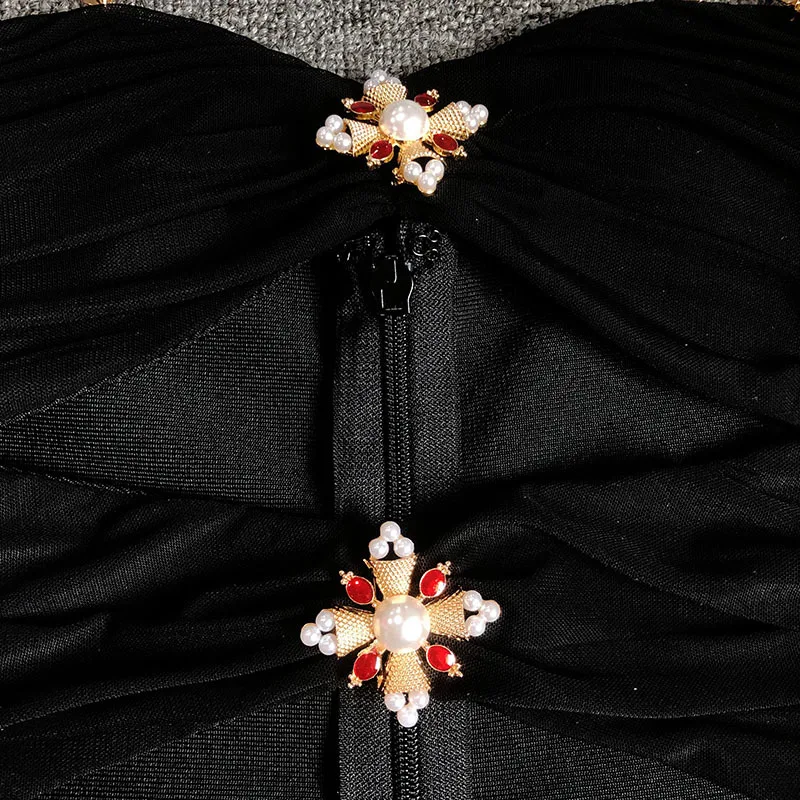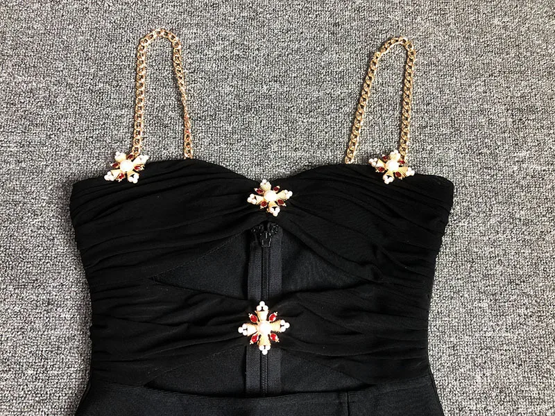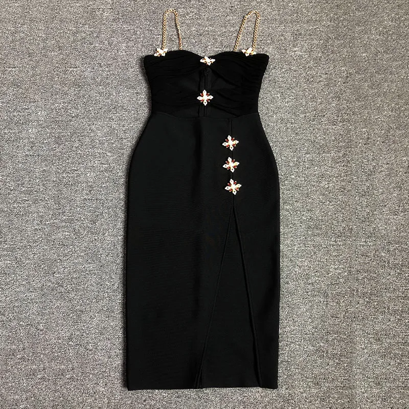 Product name | Luxury Evening Sexy Bodycon Dress Hollow Out Rhinestone Elegant Slit Black Bandage Dresses |