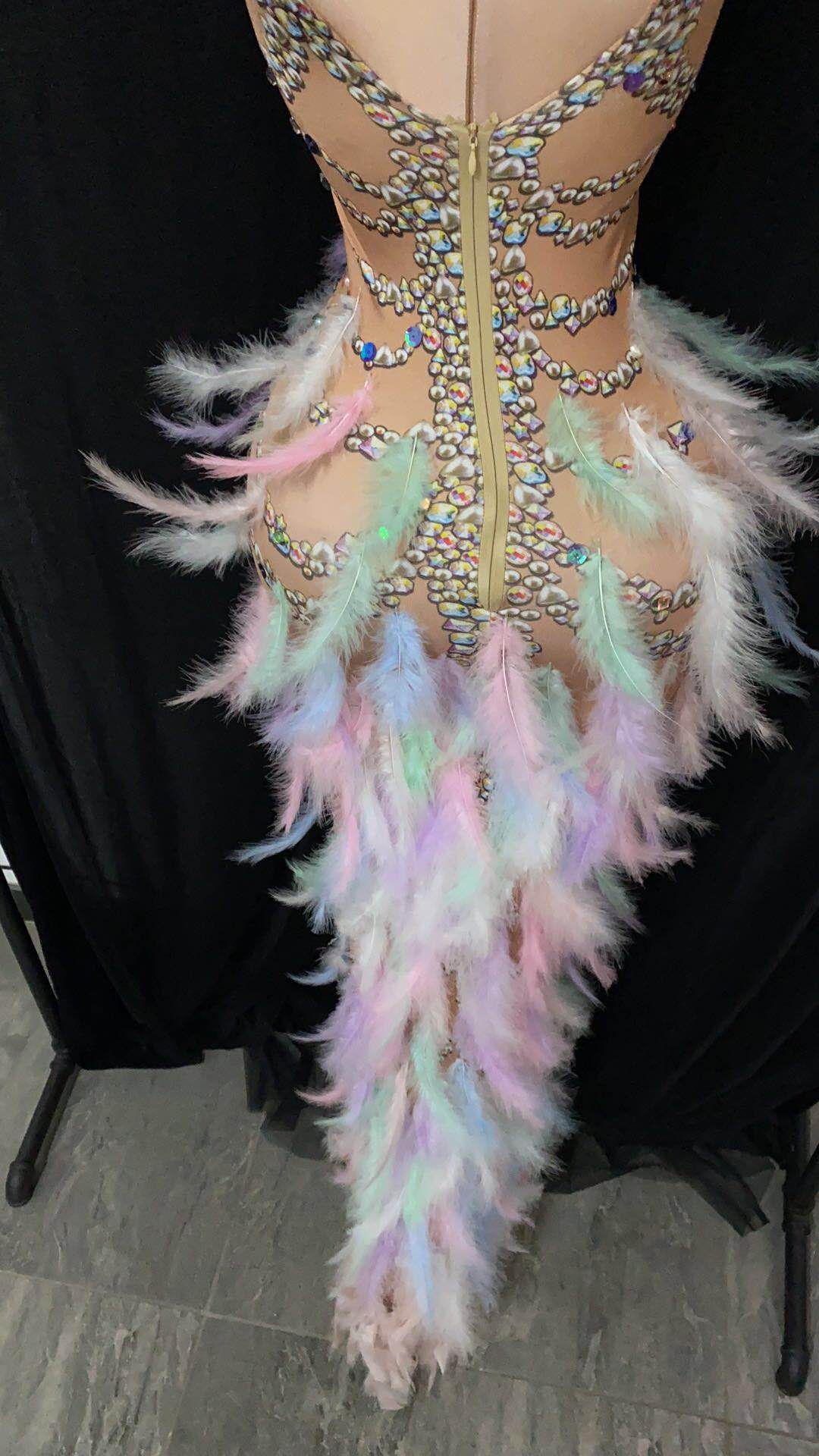 New Model Colorful Feather Rhinestone Elastic Wrap Hip Long Dress