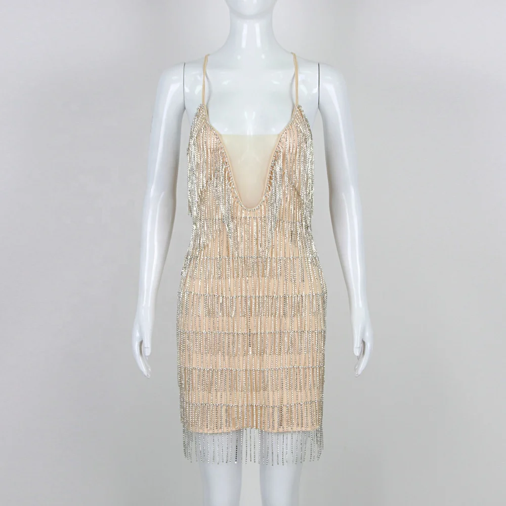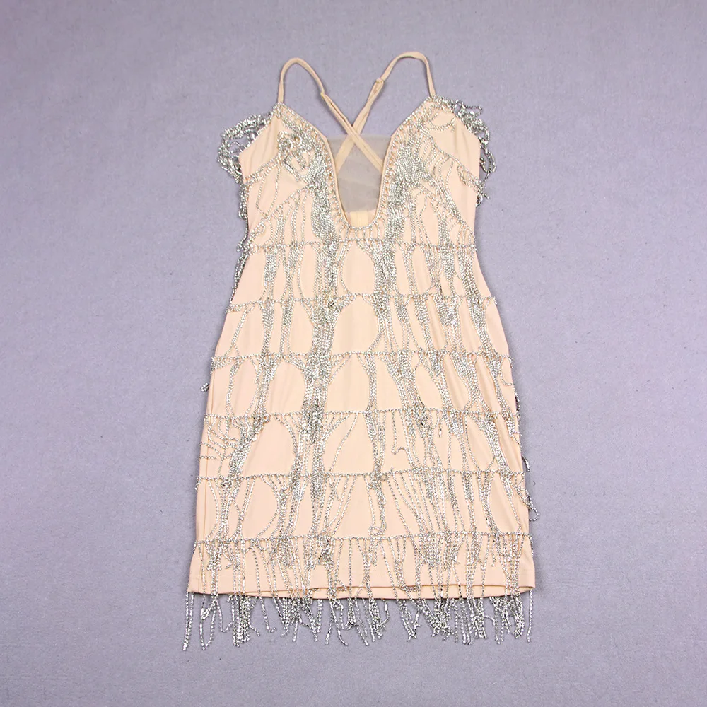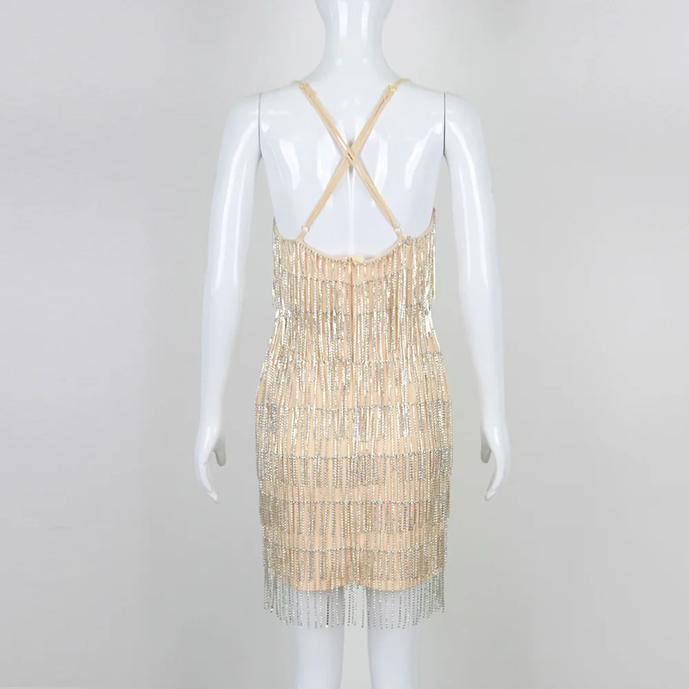 Turn heads in our Rhinestone Tassel V‑Neck Lady Elegant Casual Party Short Dress — a sparkling standout piece designed for women who love glamour with a playful edge. This chic mini dress features radiant rhinestone detailing that catches the light from every angle and delicate tassels that move with you, creating dazzling movement and drama. The flattering V‑neckline frames your neckline beautifully, while the short length highlights your legs for a bold, confident look.