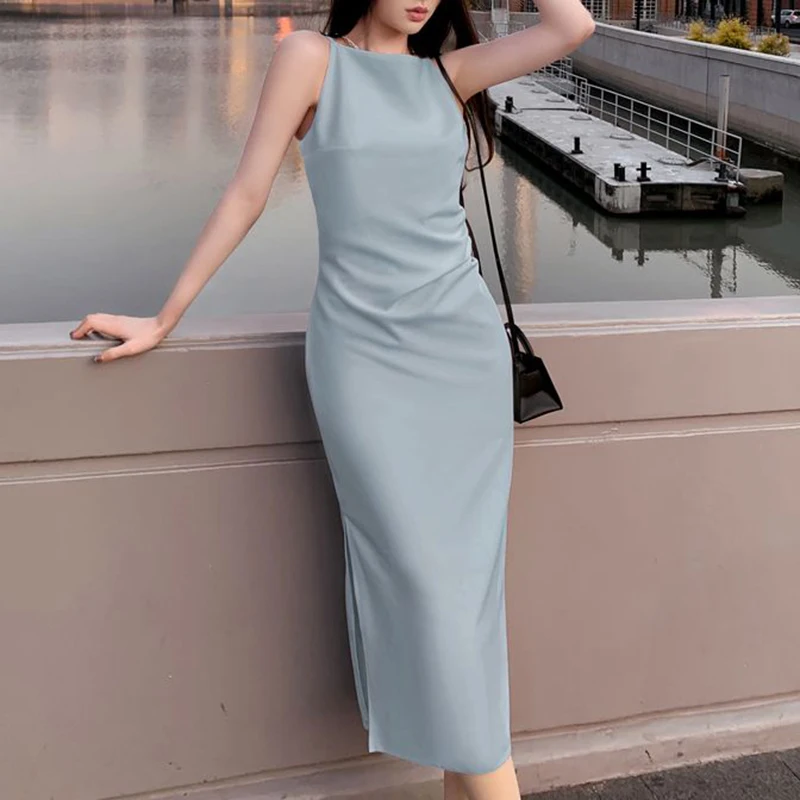 Solid Color Wrap Hip Slim Fit Long Dress crafted for women who love elegance and simplicity. This Korean-style long gown features a flattering wrap hip design, slim fit silhouette, and premium fabric, perfect for parties, gatherings, or luxury events.