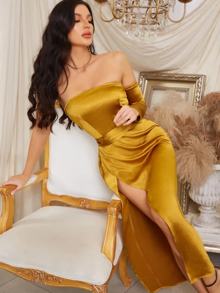 Elevate your look with this Long Sleeve Backless High Split Gown, a flawless choice for evening parties & luxury events. Shop now & shine!