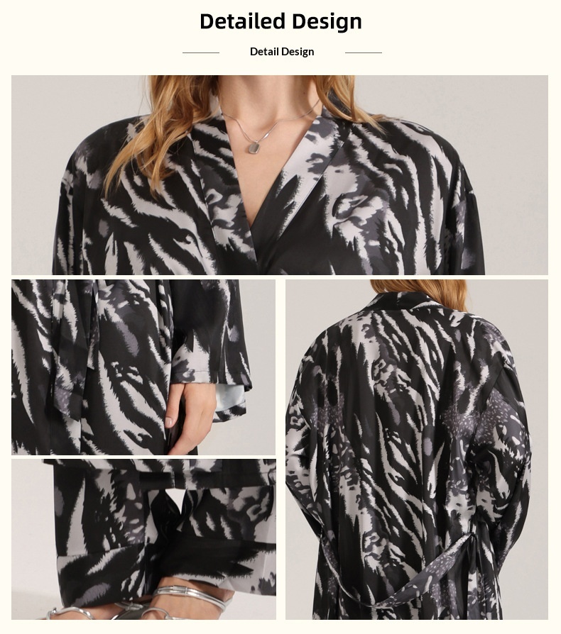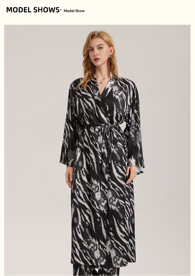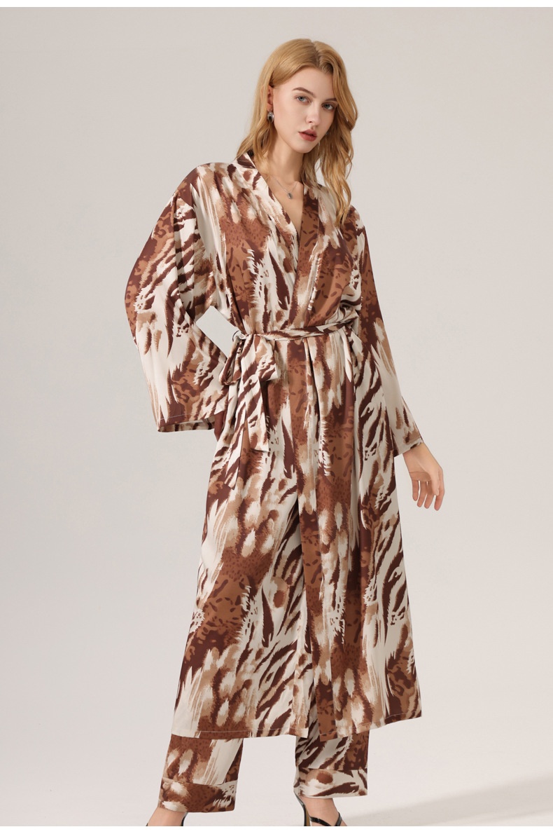 Leopard Print Satin Pajamas For Women Single Robe Style Nightgown Loungewear