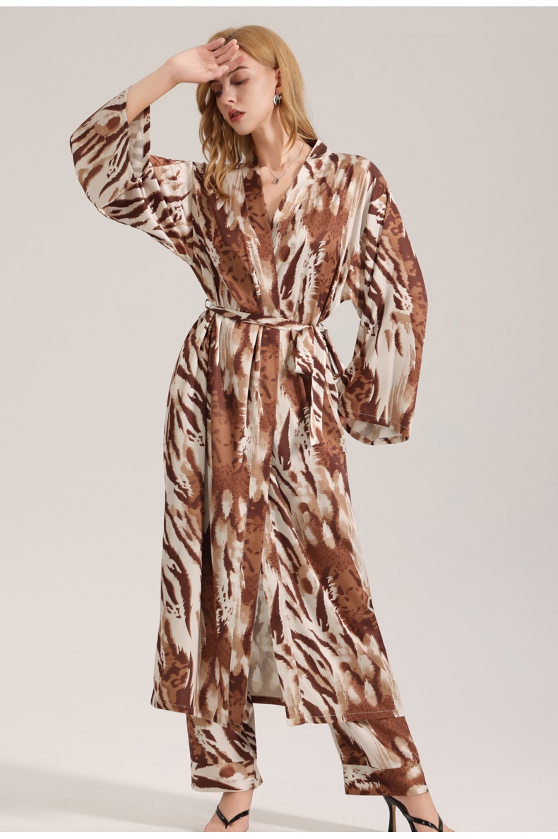 Colors: Ink-Wash Leopard Print One-Piece Robe, Golden Brown Leopard Print One-Piece Robe