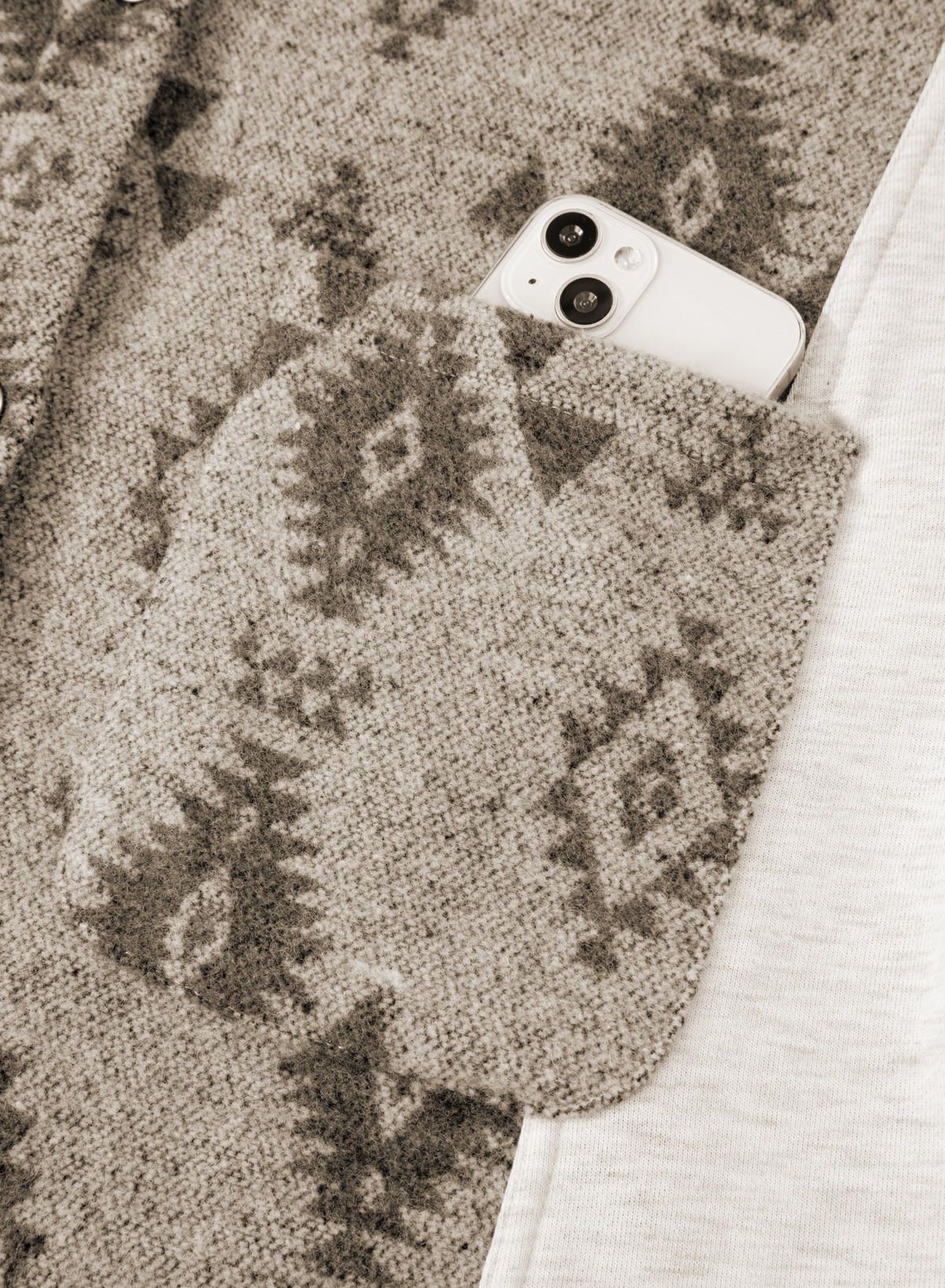 - The Aztec print patchwork adds this chic shacket a touch western flair.