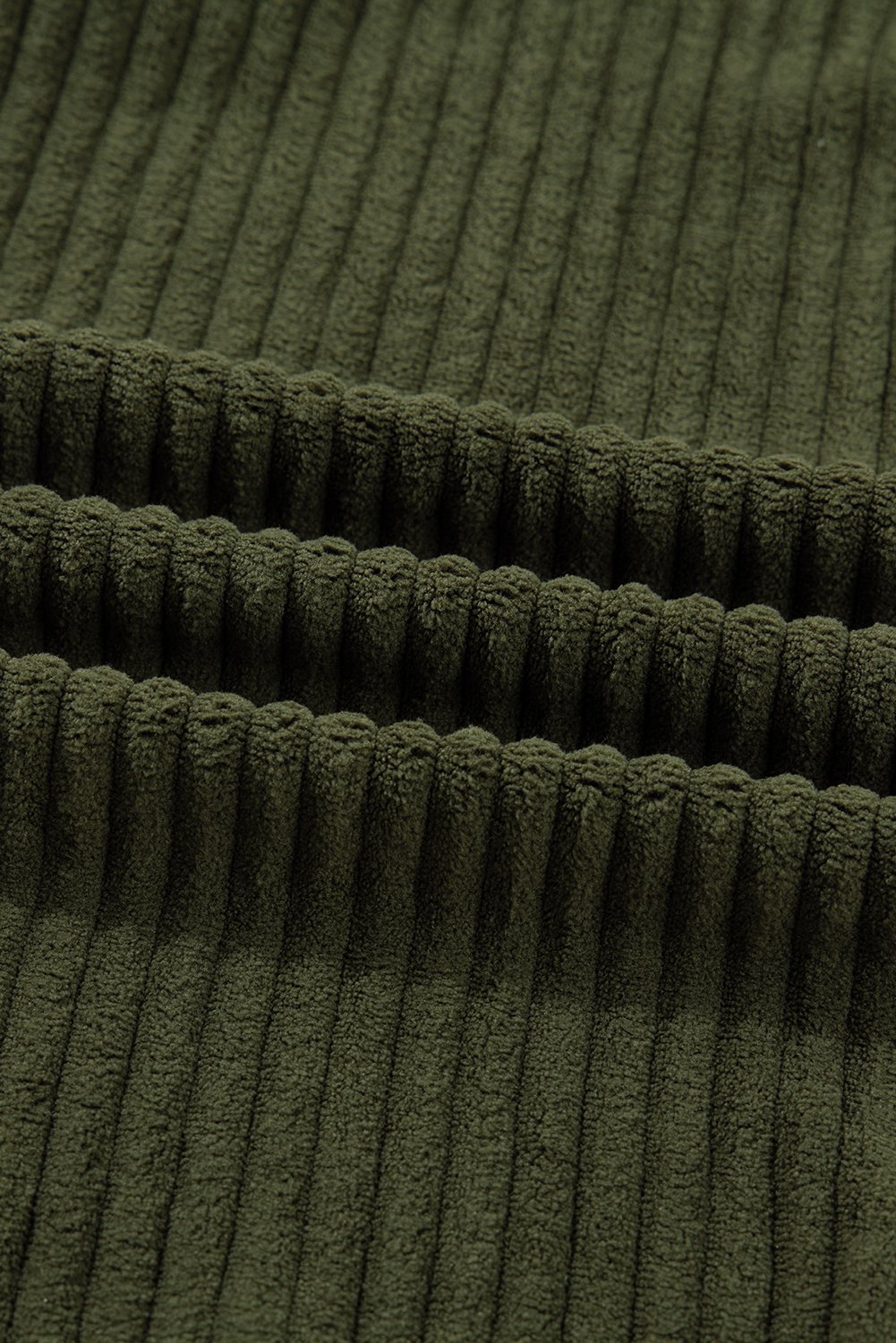 Jungle Green Ribbed Fleece Plaid Print Patchwork Button Up Jacket
