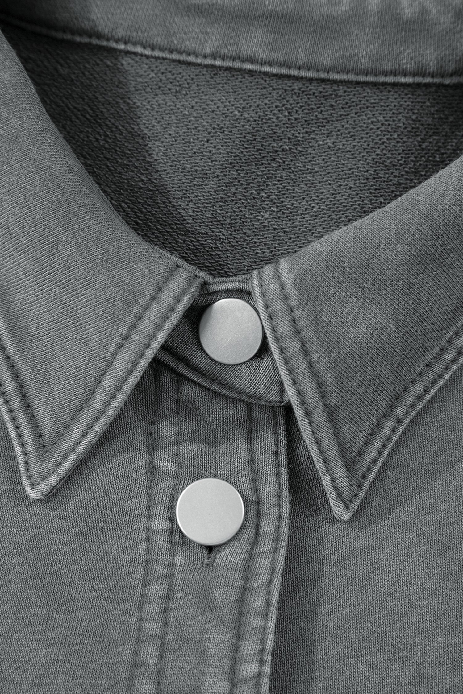 Medium Grey Mineral Wash Chest Pockets Drop Shoulder Shacket with Side Slit