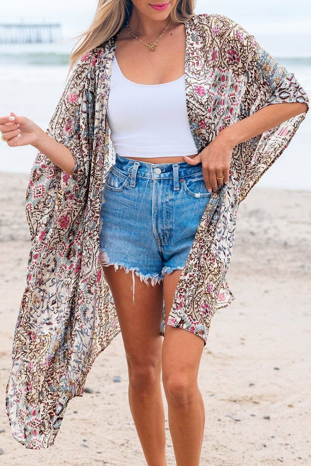 - The floral print kimono brings a fresh and stylish element to your outfit.