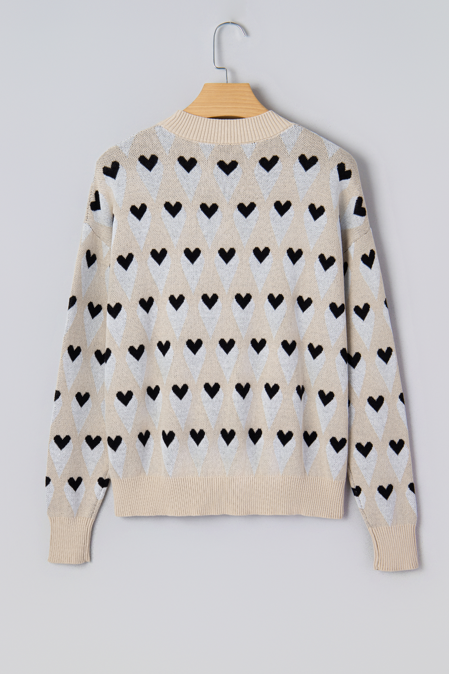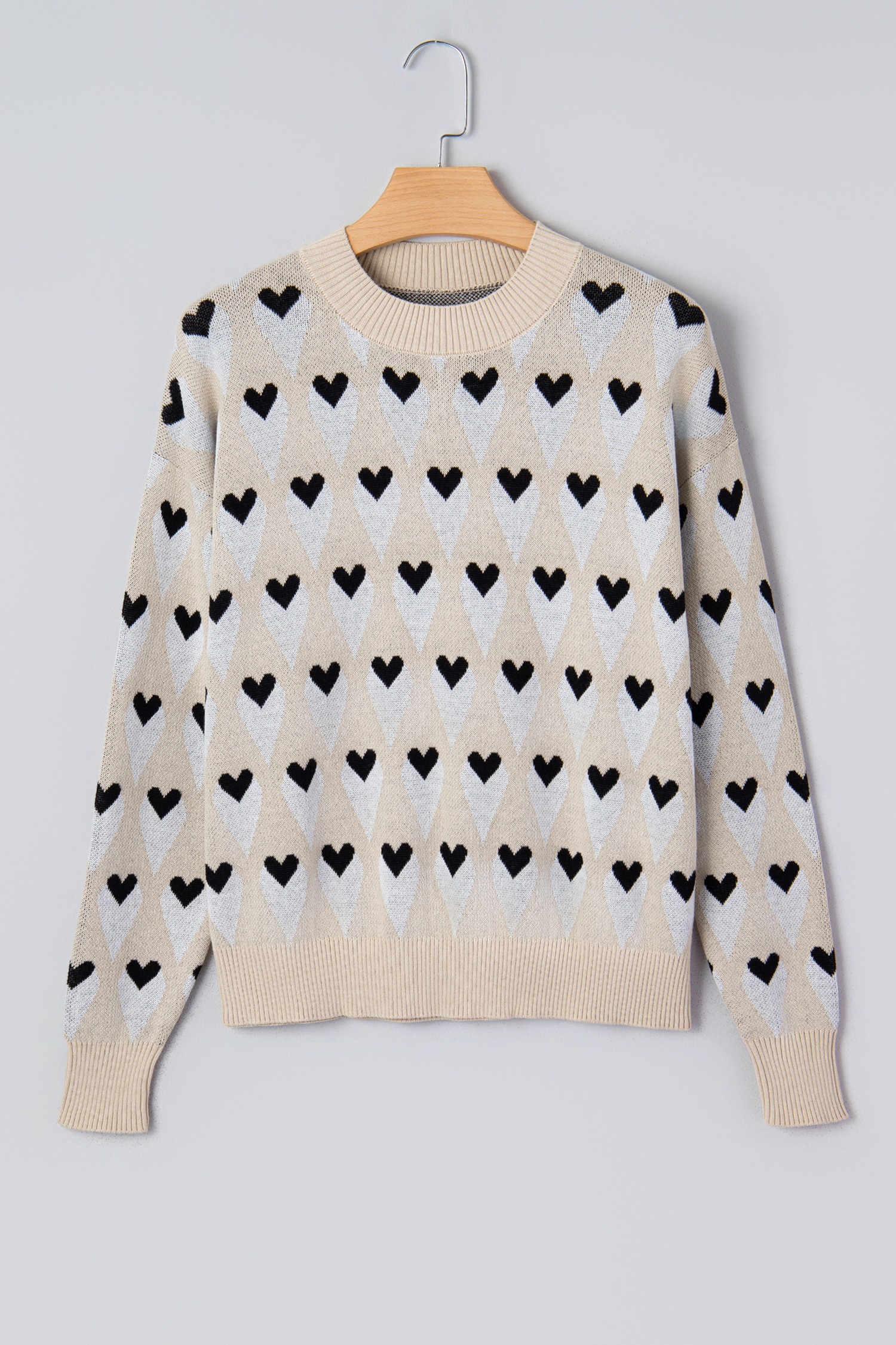 - The geometric heart print sweater adds a cute, bold touch to everyday looks.