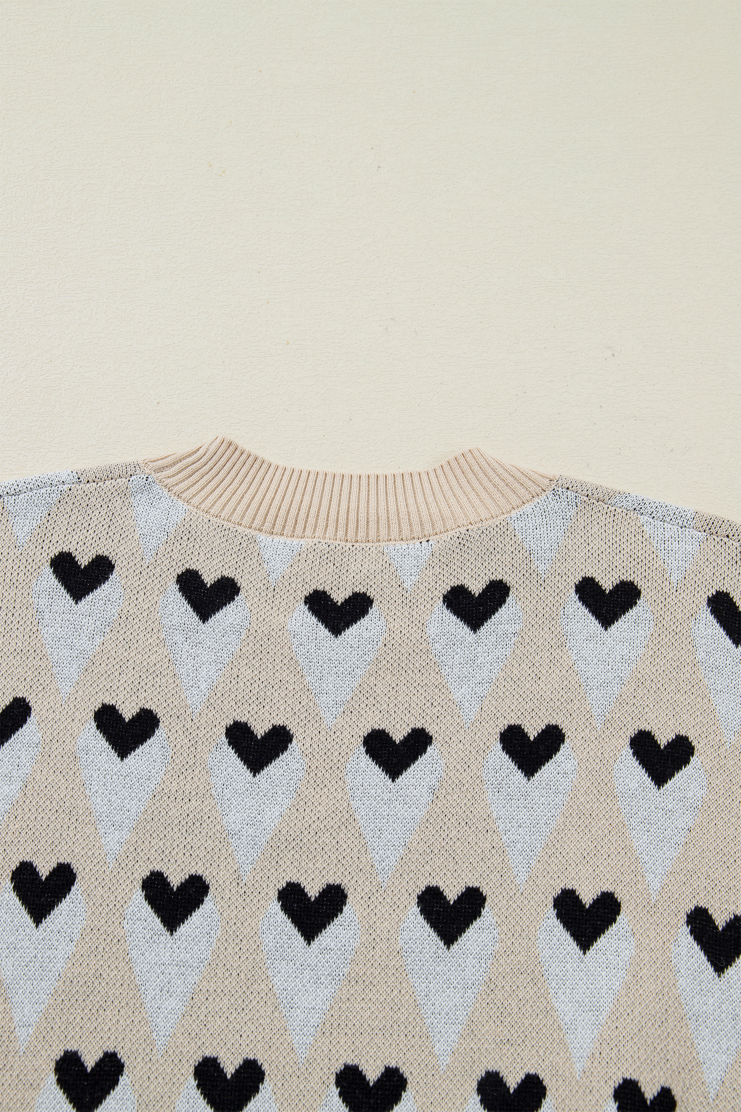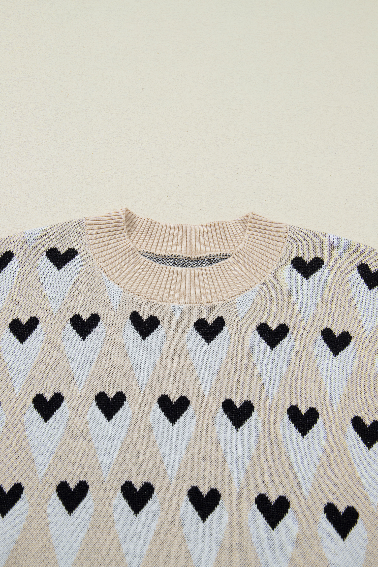 Parchment Geometric Heart Print Ribbed Trim Loose Sweater