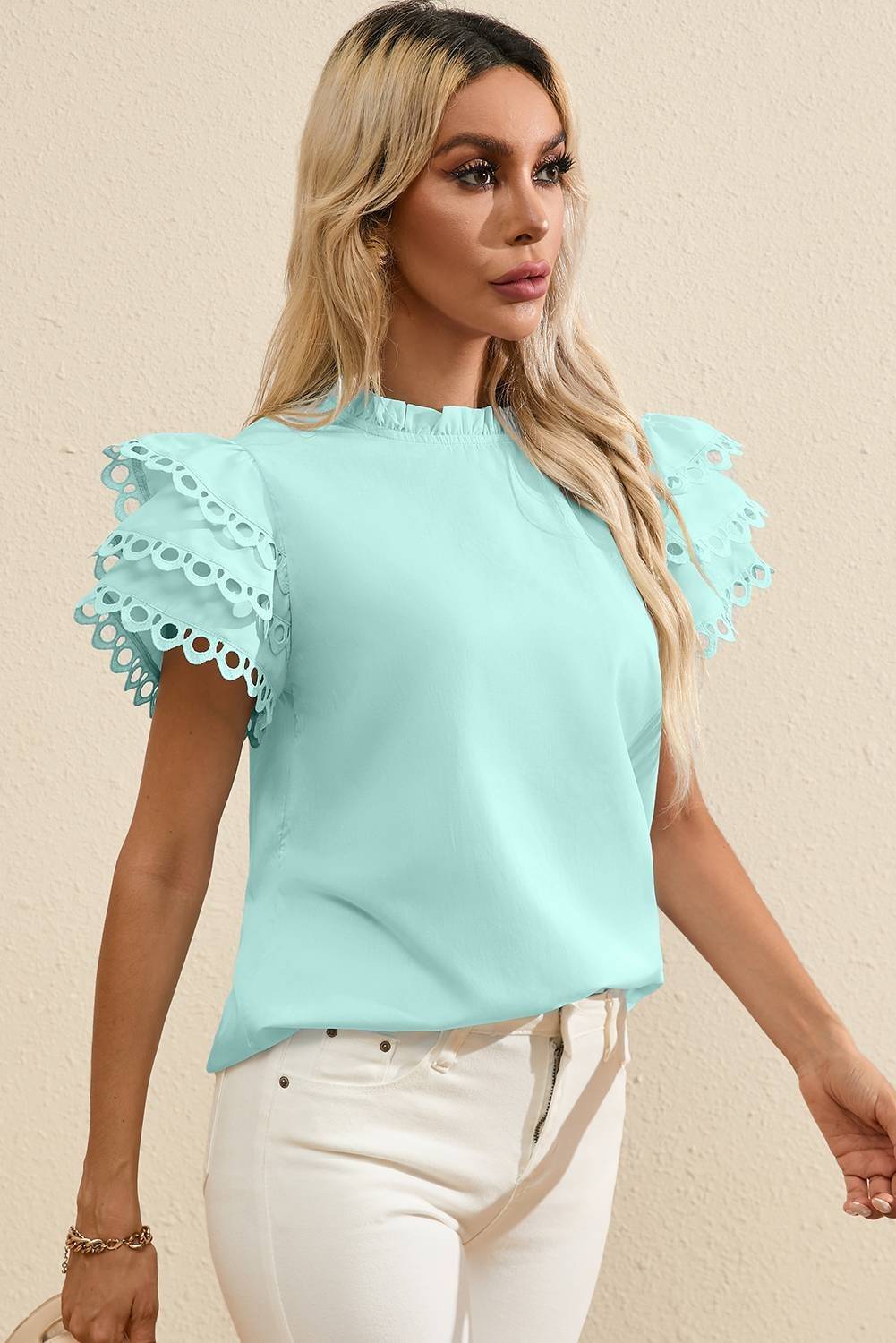 - This solid blouse creates a versatile and sophisticated style