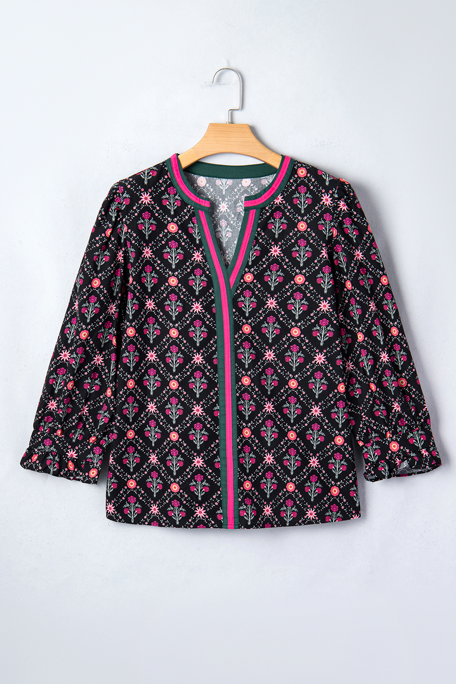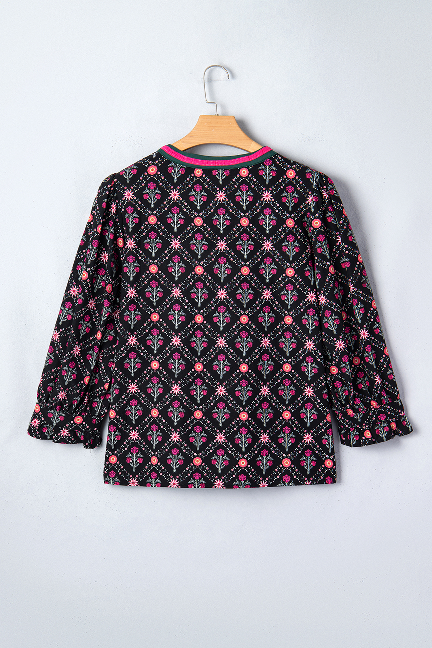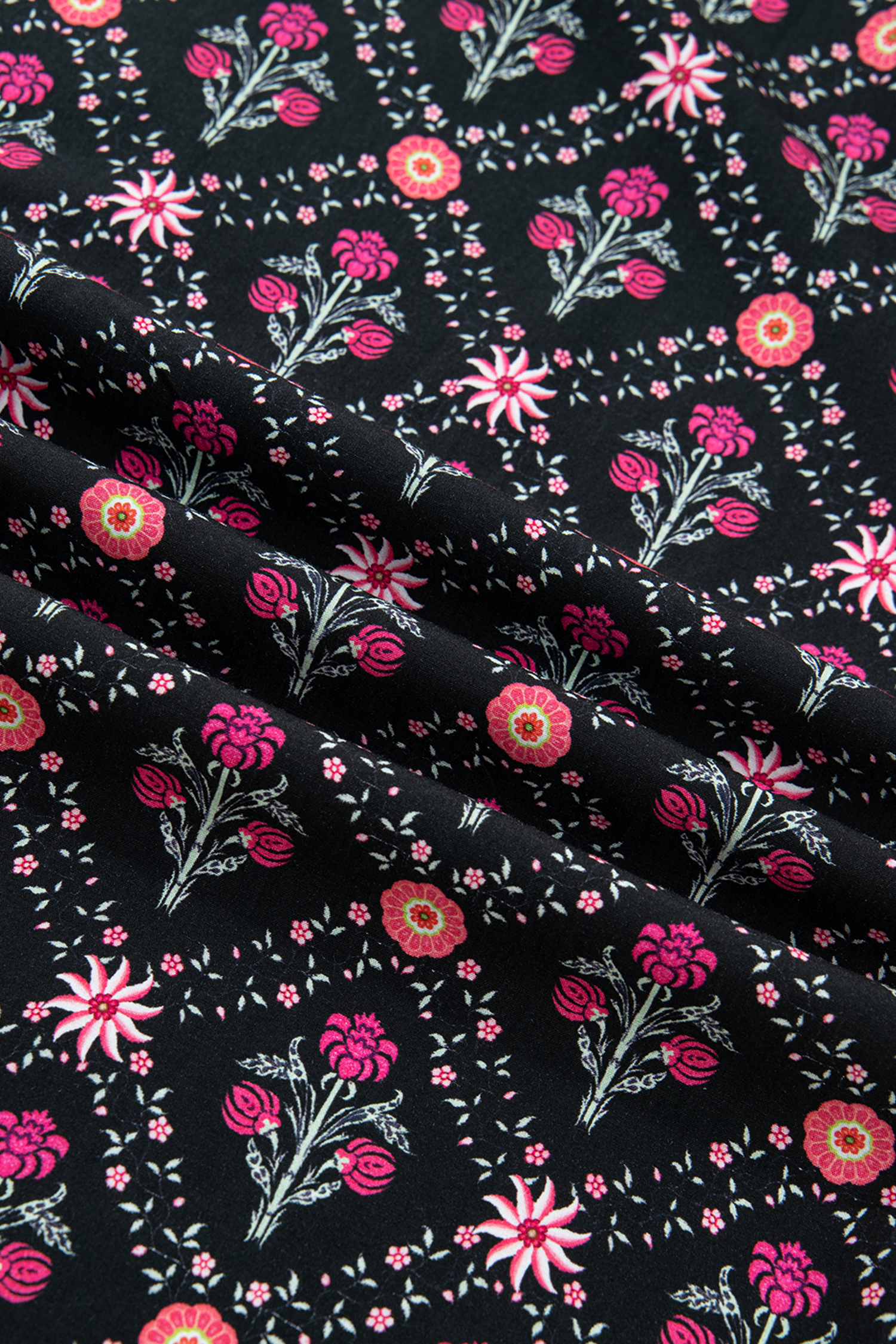 Vintage floral print adds timeless charm to elevate the outfit look.