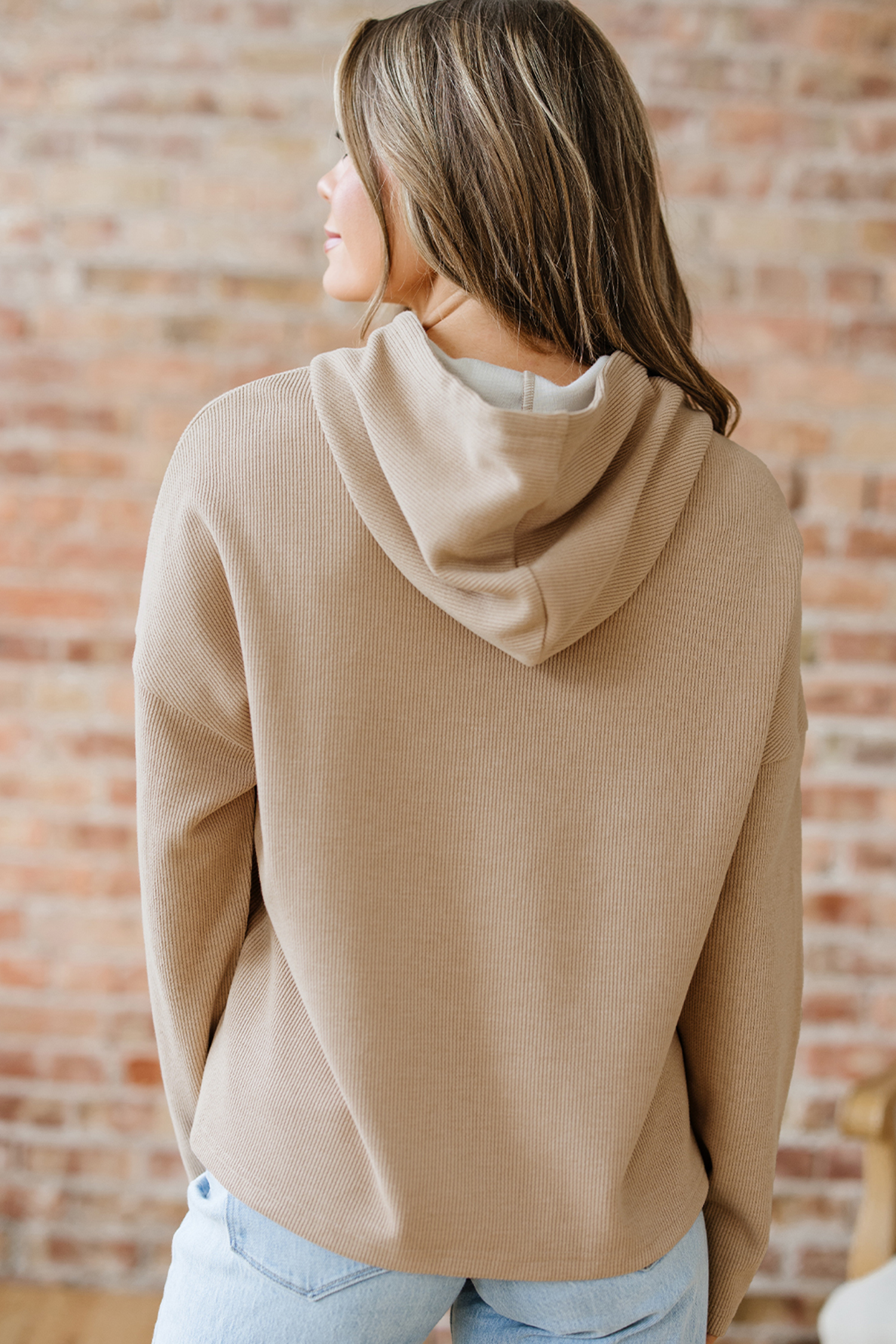 Parchment Thermal Textured Leopard Drawstring Baggy Hoodie
