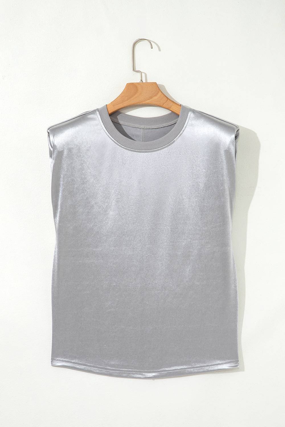 Silvery Metallic Luster Crew Neck Shift Tank Top